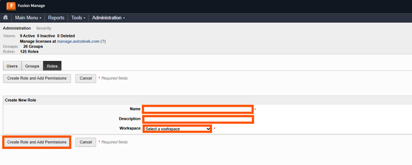 Roles control what users and groups can do in Autodesk Fusion Manage. Steps to create a role: